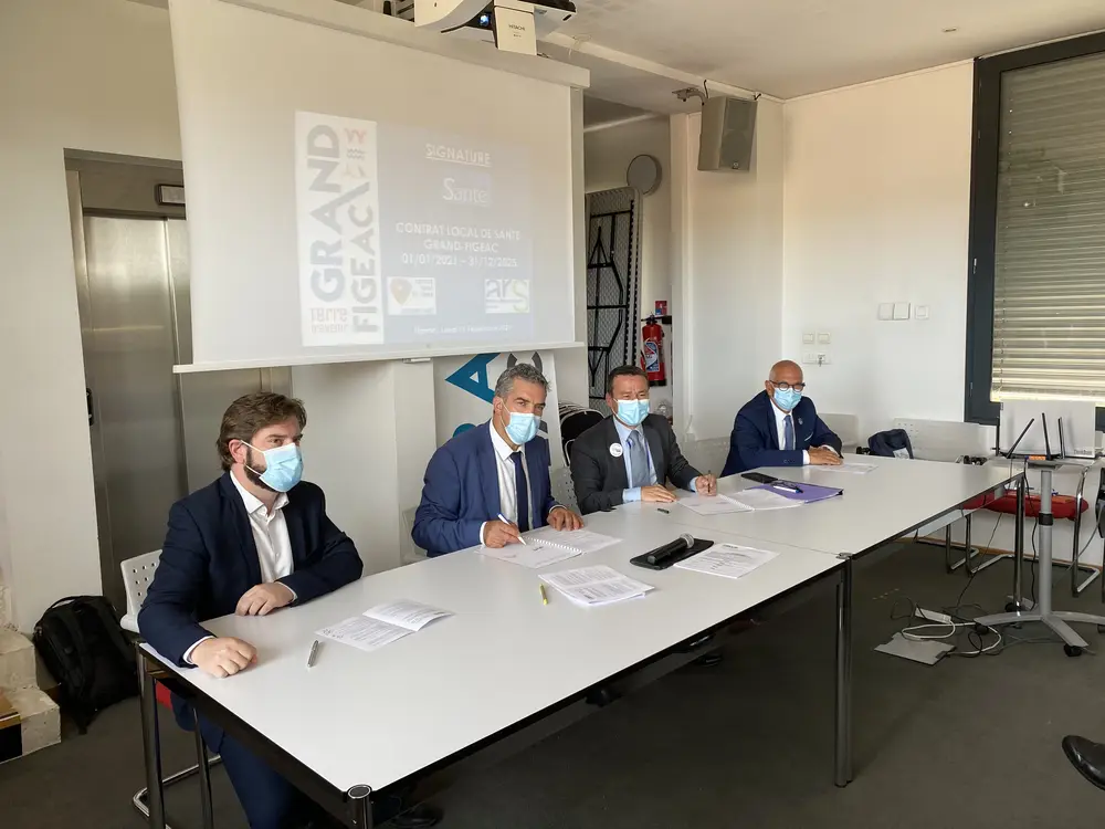 Cette signature s’est déroulée en présence de Vincent Labarthe, Président du Grand-Figeac, d’André Mellinger, Premier Vice-Président du Grand-Figeac en charge de la Santé, Raphaël Lagarde, Directeur du Centre Hospitalier de Figeac, Martin Malvy, ancien Président du Grand-Figeac, Julie Senger, Directrice de la Délégation Départementale ARS du Lot et Claude Gendre, Vice-président de la Commission Santé du Grand-Figeac.