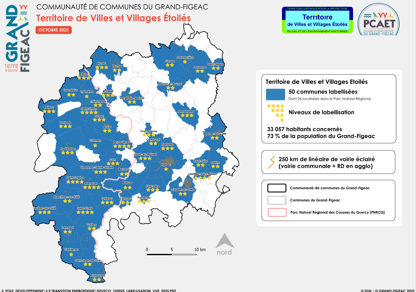 Le Grand-Figeac fait partie des 14 “Territoires de Villes et Villages Étoilés” distingués en France cette année suite au concours national organisé par l’Association Nationale pour la Protection du Ciel et de l’Environnement Nocturnes !